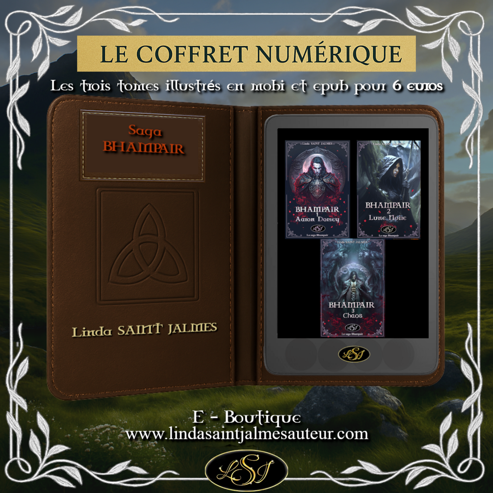 Trois romans. Une épopée celtique Dark Fantastique. Des Highlands, des enfants des dieux vampires et gardiens des mondes, action, aventure. Plongez dans l’univers captivant de La saga Bhampair avec ce coffret numérique collector, réunissant les trois tomes complets de la série.